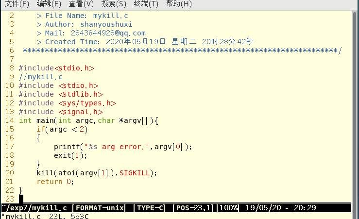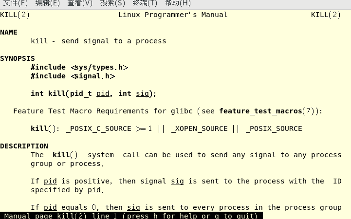 (3) 我们编写一个简单的程序,该程序调用 kill() 函数向某个进程发送信号