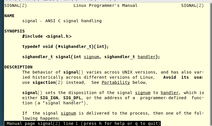 这里我们可以 通过 signal() 来改变进程对某个信号的处置方式。 signal() 可能是目前为止见过最复杂的函数。