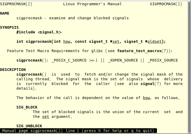我们可以通过命令 man 3 sigsetops 来查看手册