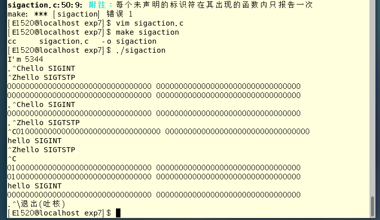 (1) 当程序运行的时候,Ctrl+C 进入 handler ,然后立即 Ctrl+Z 发现handler还未执行完就被SIGTSTP打断.