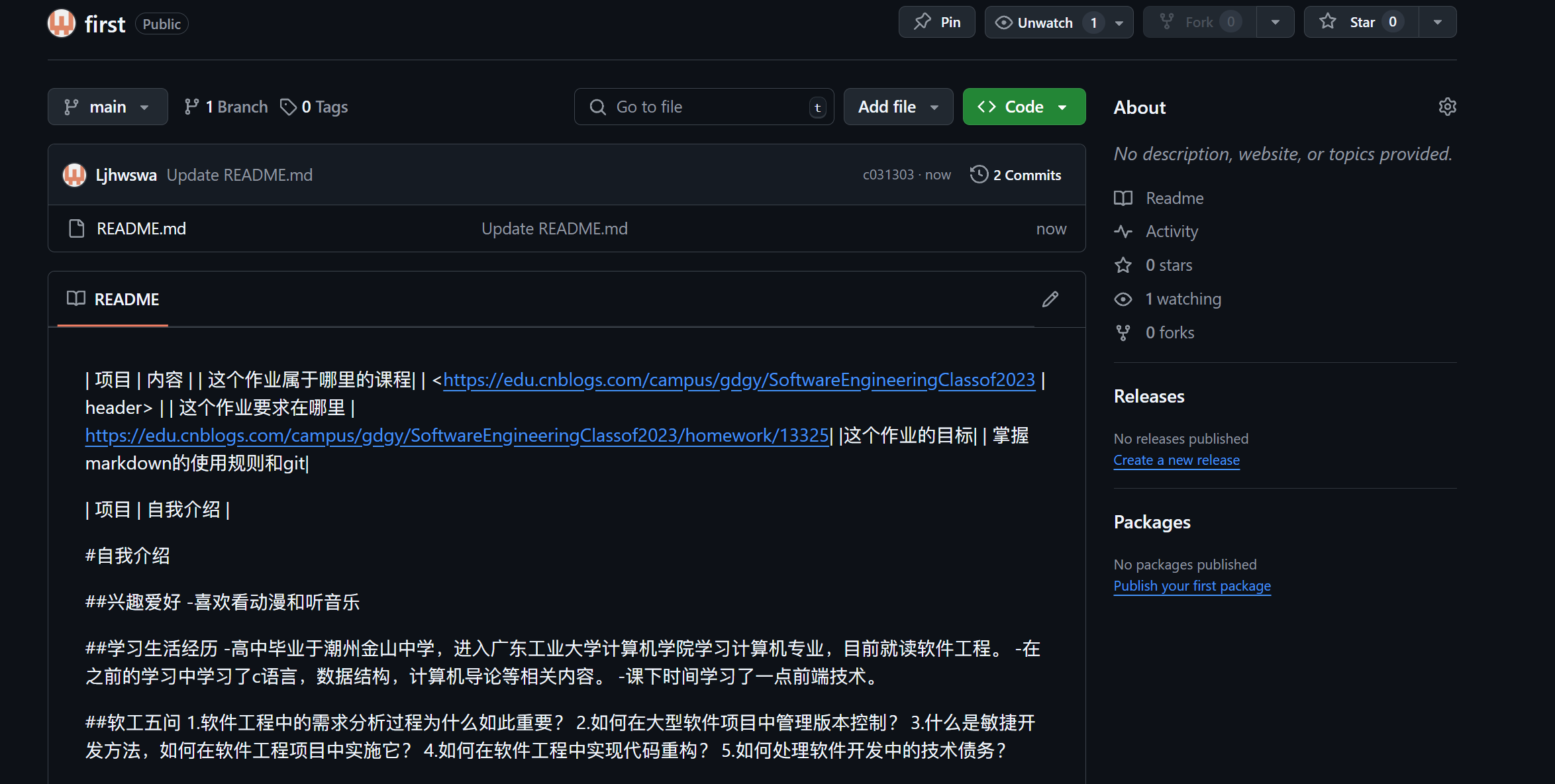 | 这个作业属于哪个课程 | <https://edu.cnblogs.com/campus/gdgy/SoftwareEngineeringClassof2023 > |