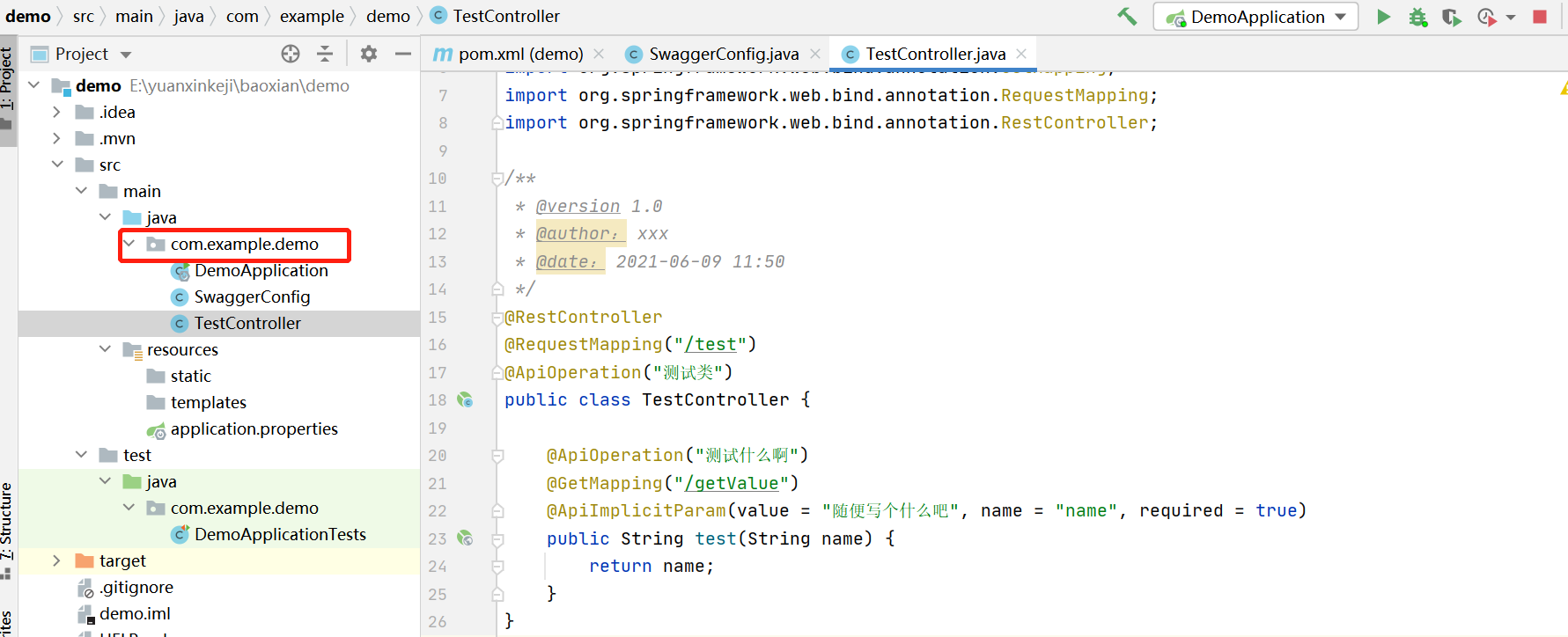 .apis(RequestHandlerSelectors.basePackage("com.example.demo")) //扫描的包名,必须写