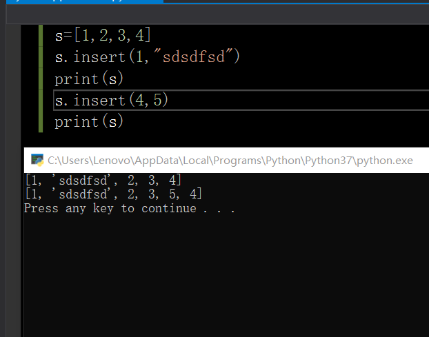 insert函数(xx.insert(x,y)):在不覆盖原有元素的基础上,在指定下标(x)处添加一个元素(y),原数据向后顺延。