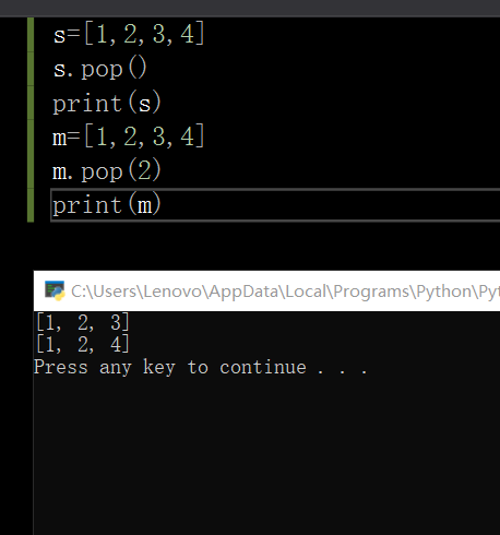 1、pop函数(xx.pop(x)):移除列表中指定下标处的元素,(未指明下标时,默认移除最后一个元素),并返回删除后的剩余数据。