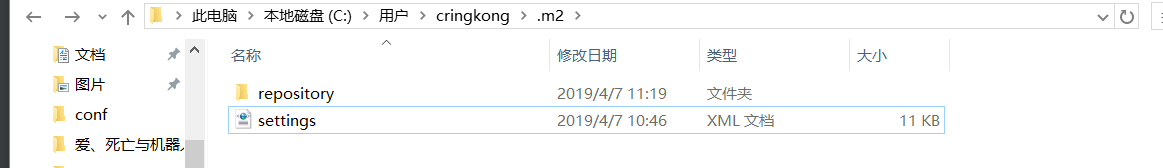 打开目录,坑爹的事情发生了,这压根就没有settings.xml文件啊?这时如果我们去创建一个maven工程,就会出现问题。