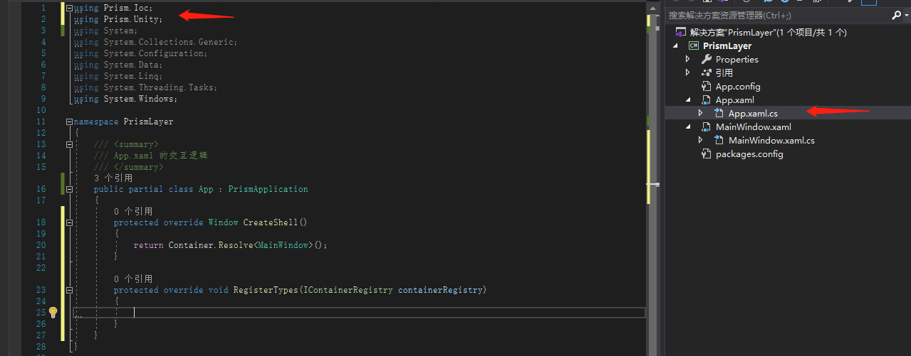 3.Nuget引入2个包分别是Prism.Unity Prism.Unity.Extensions.Net40 (Core用 Prism.Unity.Extensions)