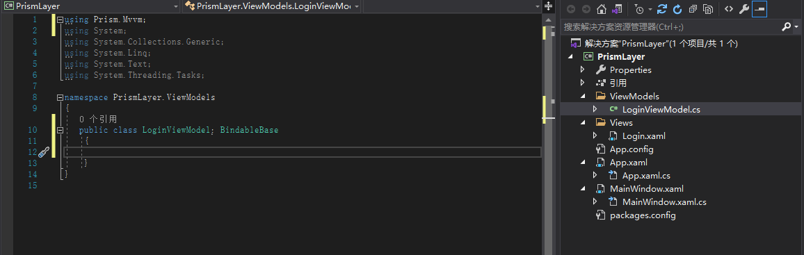 7 ViewModels文件夹下创建 LoginViewModel 类文件 并继承BindbleBase (using Prism.Mvvm)