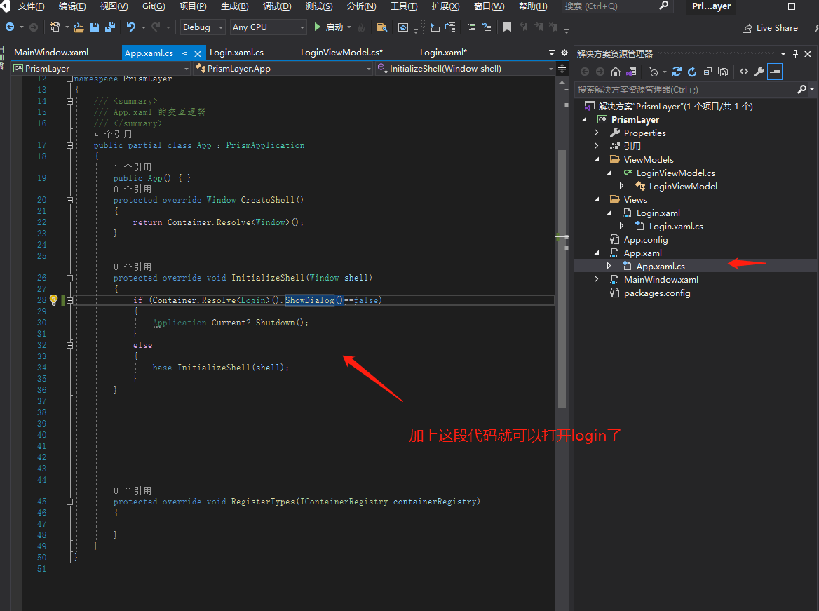 10打login界面 打开App.xaml.cs