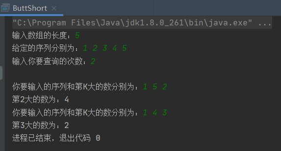 System.out.print("第" + k + "大的数为:" + arr2[1 + k - 1]);