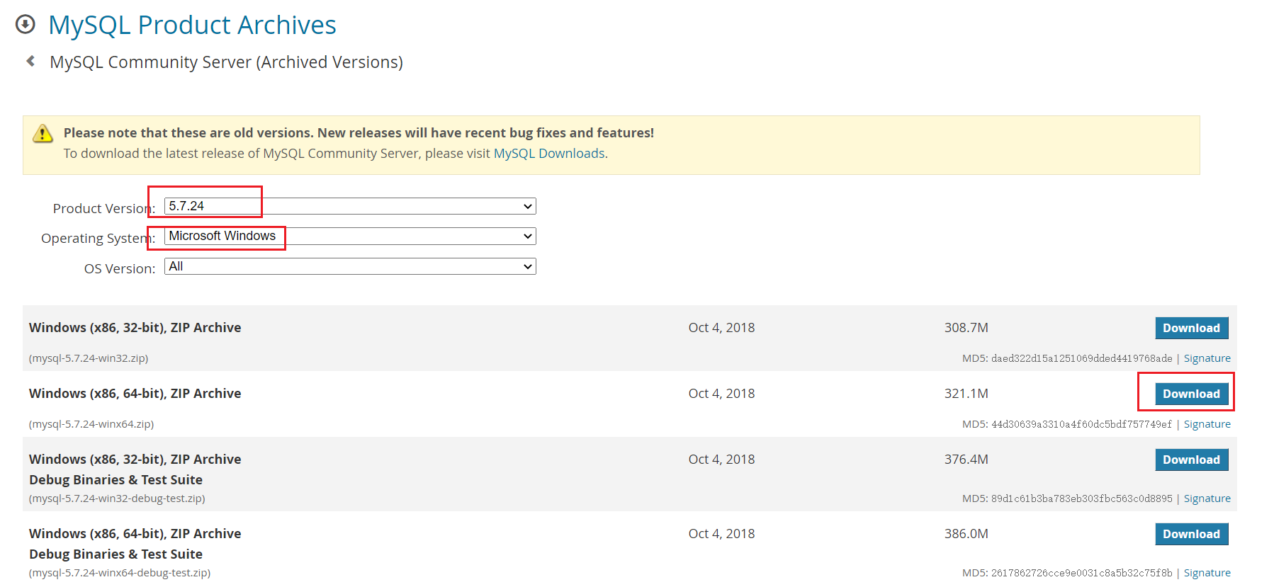 网址:https://downloads.mysql.com/archives/community/