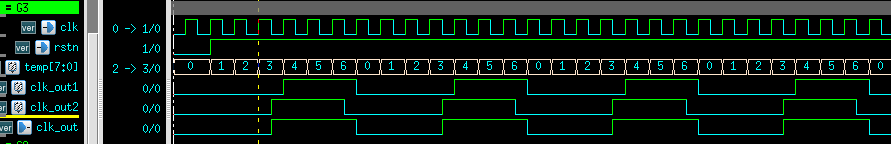 6、分别计数到3(DIV_PARA-1 )时,clk_out1=0,clk_out2=0;