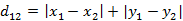 (1)二维平面两点a(x1,y1)与b(x2,y2)间的曼哈顿距离: