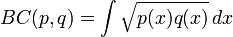 对于连续概率分布,Bhattacharyya系数被定义为:在这两种情况下,巴氏距离