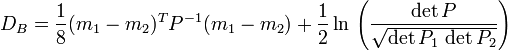 需要注意的是,在这种情况下,第一项中的Bhattacharyya距离与马氏距离有关联。