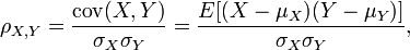 相关系数 ( Correlation coefficient )的定义是:(其中,E为数学期望或均值,D为方差,D开根号为标准差,E{ [X-E(X)] [Y-E(Y)]}称为随机变量X与Y的协方差,记为Cov(X,Y),即Cov(X,Y) = E{ [X-E(X)] [Y-E(Y)]},而两个变量之间的协方差和标准差的商则称为随机变量X与Y的相关系数,记为)
