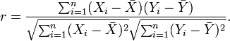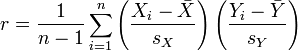 两个变量之间的皮尔逊相关系数定义为两个变量之间的协方差和标准差的商:以上方程定义了总体相关系数, 一般表示成希腊字母ρ(rho)。基于样本对协方差和方差进行估计,可以得到样本标准差, 一般表示成r:一种等价表达式的是表示成标准分的均值。基于(Xi, Yi)的样本点,样本皮尔逊系数是:其中、