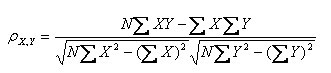 或许上面的讲解令你头脑混乱不堪,没关系,我换一种方式讲解,如下:假设有两个变量X、Y,那么两变量间的皮尔逊相关系数可通过以下公式计算: