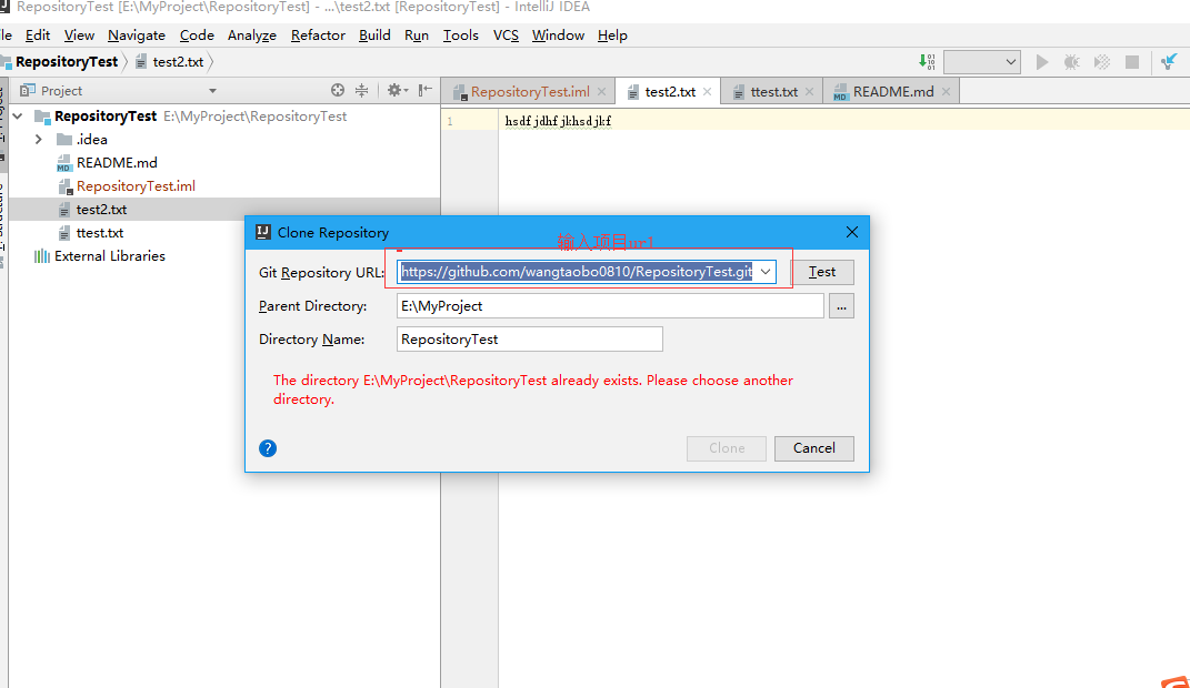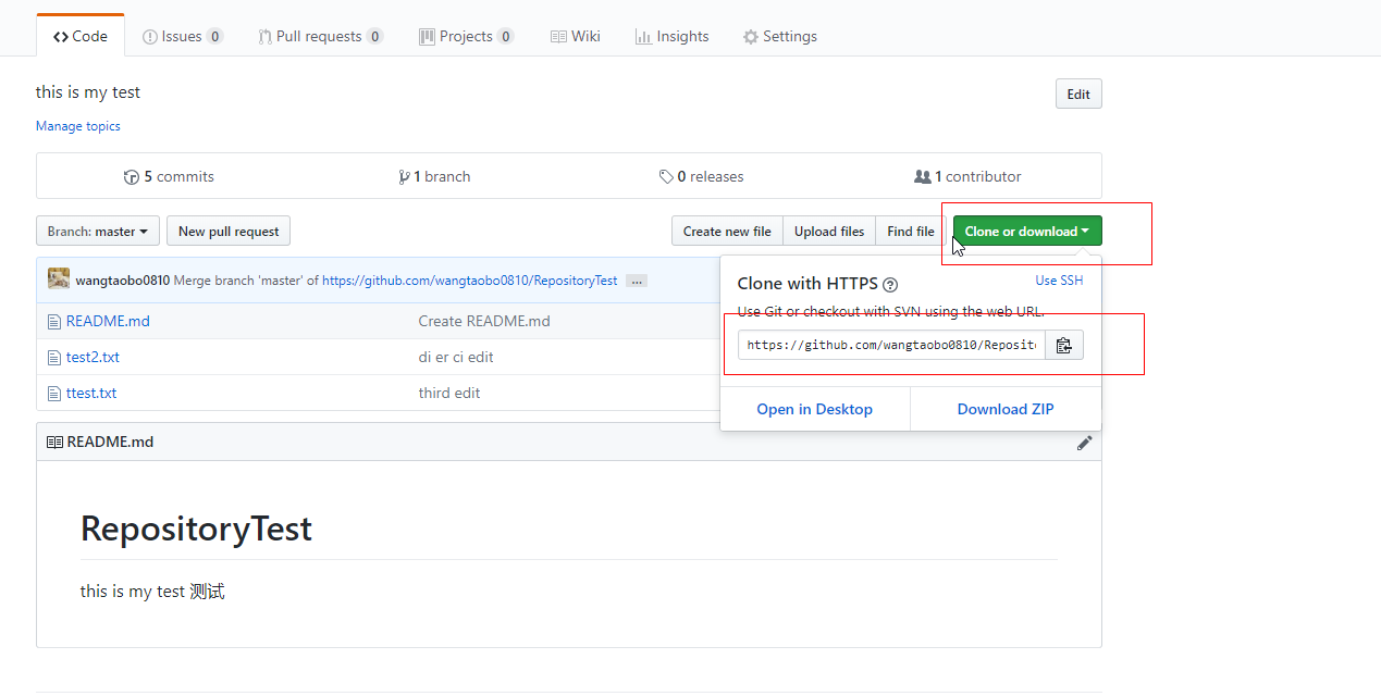 git clone https://github.com/wangtaobo0810/RepositoryTest.git 克隆代码