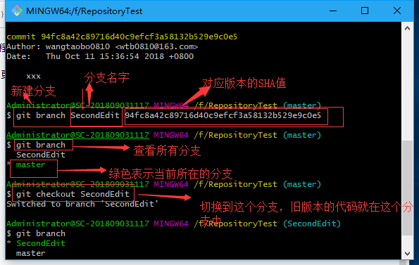 git branch SecondEdit 94fc8a42c89716d40c9efcf3a58132b529e9c0e5 创建新的分支