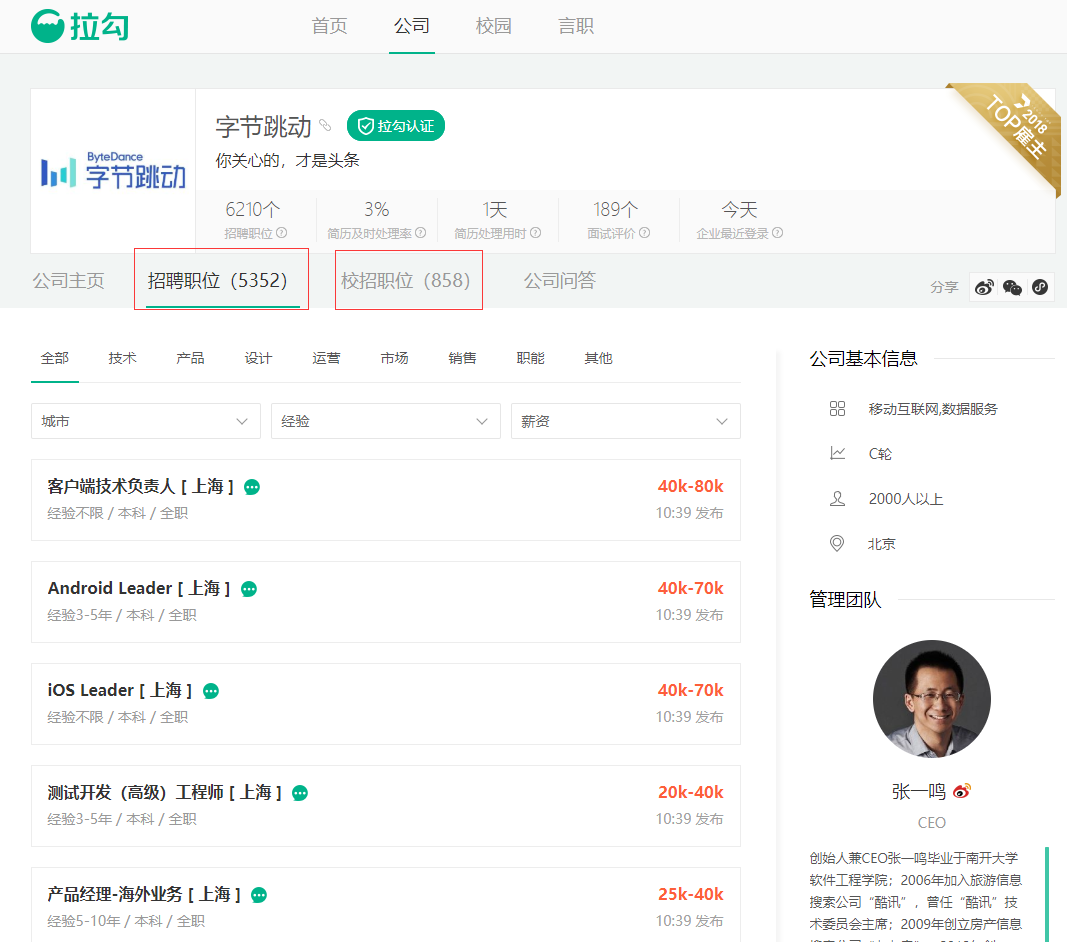 打开网站公司主页,我们的目标数据首页的招聘职位以及校招职位