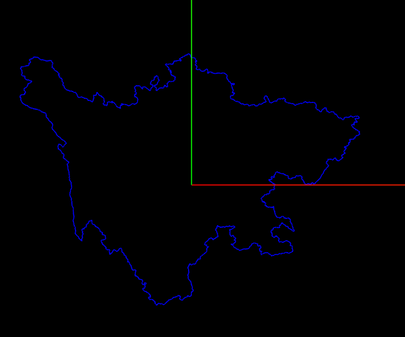 在阿里云DataV数据可视化平台可获取到行政区域边界数据,从中截取需要的数组,获取数据后结合Three.js,可绘制出四川省的行政区边界线,如下:
