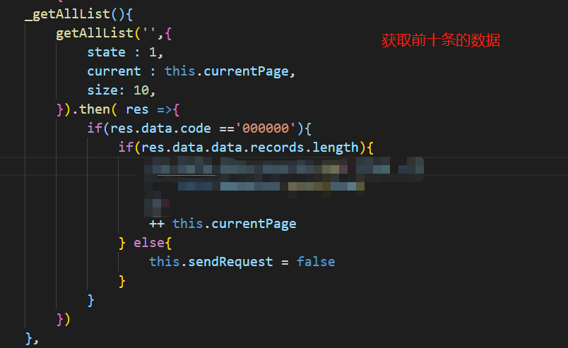 2 当页面距离底部小与 50px 的时候,再次调用这个方法 【与底部的距离自己把控可以是50px,也可以是100px,凭借个人喜好】