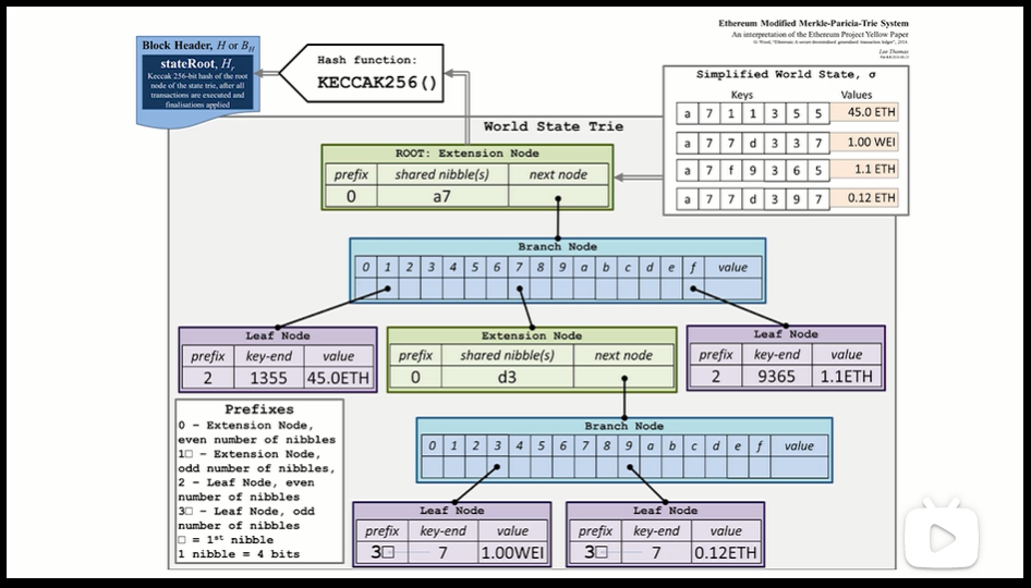 而以太坊中用到的是修改过的压缩前缀树(Modified MPT):
