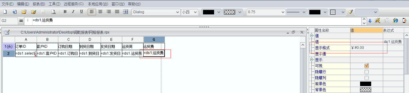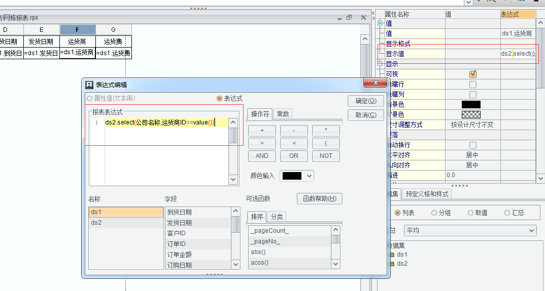 含义为:取ds2数据源的公司名称,货运商ID为当前单元格的内容
