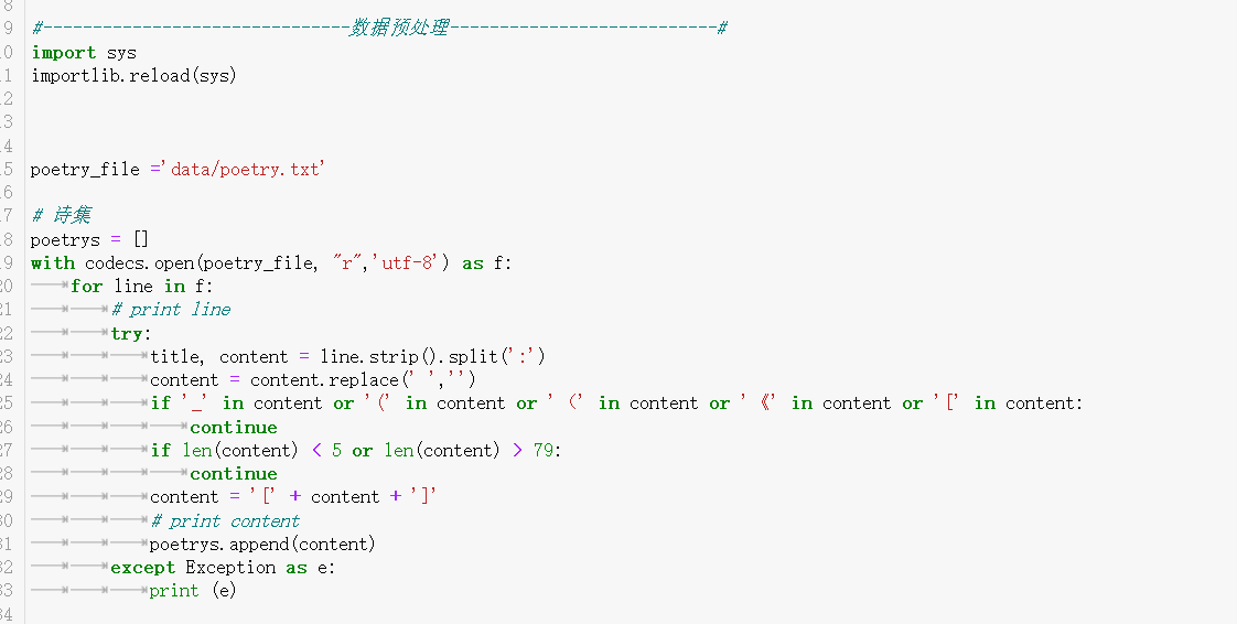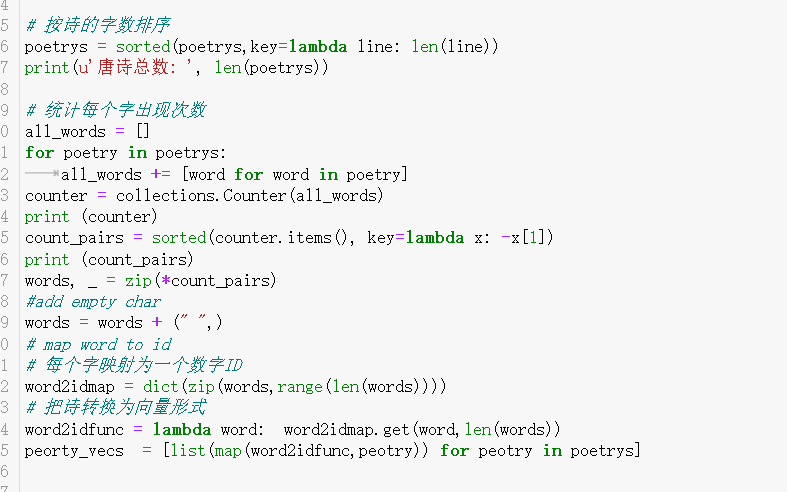 - 数据:通过selenium自动化框架对古诗词网站进行爬取,将爬取下来的古诗词用jieba 分词进行分词,将数据分为训练集和测试集