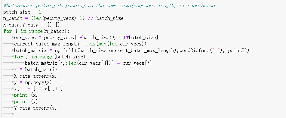 1 #coding=utf-8 2 3 import collections 4 import numpy as np 5 import tensorflow.compat.v1 as tf 6 import codecs 7 import importlib 8 #-------------------------------数据预处理---------------------------# 9 import sys 10 importlib.reload(sys) 11 12 13 14 poetry_file ='data/poetry.txt' 15 16 17 # 诗集 18 poetrys = [] 19 with codecs.open(poetry_file, "r",'utf-8') as f: 20 for line in f: 21 # print line 22 try: 23 title, content = line.strip().split(':') 24 content = content.replace(' ','') 25 if '_' in content or '(' in content or '(' in content or '《' in content or '[' in content: 26 continue 27 if len(content) < 5 or len(content) > 79: 28 continue 29 content = '[' + content + ']' 30 # print content 31 poetrys.append(content) 32 except Exception as e: 33 print (e) 34 35 # 按诗的字数排序 36 poetrys = sorted(poetrys,key=lambda line: len(line)) 37 print(u'唐诗总数: ', len(poetrys)) 38 39 # 统计每个字出现次数 40 all_words = [] 41 for poetry in poetrys: 42 all_words += [word for word in poetry] 43 counter = collections.Counter(all_words) 44 # print counter 45 count_pairs = sorted(counter.items(), key=lambda x: -x[1]) 46 # print count_pairs 47 words, _ = zip(*count_pairs) 48 #add empty char 49 words = words + (" ",) 50 # map word to id 51 # 每个字映射为一个数字ID 52 word2idmap = dict(zip(words,range(len(words)))) 53 # 把诗转换为向量形式 54 word2idfunc = lambda word: word2idmap.get(word,len(words)) 55 peorty_vecs = [list(map(word2idfunc,peotry)) for peotry in poetrys] 56 57 58 59 #batch-wise padding:do padding to the same size(sequence length) of each batch 60 batch_size = 1 61 n_batch = (len(peorty_vecs)-1) // batch_size 62 X_data,Y_data = [],[] 63 for i in range(n_batch): 64 cur_vecs = peorty_vecs[i*batch_size:(i+1)*batch_size] 65 current_batch_max_length = max(map(len,cur_vecs)) 66 batch_matrix = np.full((batch_size,current_batch_max_length),word2idfunc(" "),np.int32) 67 for j in range(batch_size): 68 batch_matrix[j,:len(cur_vecs[j])] = cur_vecs[j] 69 x = batch_matrix 70 X_data.append(x) 71 y = np.copy(x) 72 y[:,:-1] = x[:,1:] 73 # print x 74 # print y 75 Y_data.append(y) 76 77 78 #build rnn 79 80 vocab_size = len(words)+1 81 tf.compat.v1.disable_eager_execution() 82 83 #input_size:(batch_size,feature_length) 84 input_sequences = tf.placeholder(tf.int32,shape=[batch_size,None]) 85 output_sequences = tf.placeholder(tf.int32,shape=[batch_size,None]) 86 87 88 def build_rnn(hidden_units=128,layers=2): 89 #embeding 90 with tf.variable_scope("embedding"): 91 embedding = tf.get_variable("embedding",[vocab_size,hidden_units],dtype=tf.float32) 92 #input: batch_size * time_step * embedding_feature 93 input = tf.nn.embedding_lookup(embedding,input_sequences) 94 95 basic_cell = tf.nn.rnn_cell.BasicLSTMCell(hidden_units,state_is_tuple=True) 96 stack_cell = tf.nn.rnn_cell.MultiRNNCell([basic_cell]*layers) 97 _initial_state = stack_cell.zero_state(batch_size,tf.float32) 98 outputs, state = tf.nn.dynamic_rnn(stack_cell, input,initial_state=_initial_state,dtype=tf.float32) 99 outputs = tf.reshape(outputs, [-1,hidden_units]) 100 101 with tf.variable_scope("softmax"): 102 softmax_w =tf.get_variable("softmax_w",[hidden_units,vocab_size]) 103 softmax_b =tf.get_variable("softmax_b",[vocab_size]) 104 logits = tf.matmul(outputs,softmax_w)+softmax_b 105 106 probs = tf.nn.softmax(logits) 107 108 return logits, probs,stack_cell, _initial_state,state 109 110 def train(reload=True): 111 logits, probs,_,_,_ = build_rnn() 112 113 targets = tf.reshape(output_sequences,[-1]) 114 115 loss = tf.nn.seq2seq.sequence_loss_by_example([logits], [targets], 116 [tf.ones_like(targets, dtype=tf.float32)],len(words)) 117 cost = tf.reduce_mean(loss) 118 119 learning_rate = tf.Variable(0.002, trainable=False) 120 tvars = tf.trainable_variables() 121 grads, _ = tf.clip_by_global_norm(tf.gradients(cost, tvars), 5) 122 optimizer = tf.train.AdamOptimizer(learning_rate) 123 train_op = optimizer.apply_gradients(zip(grads, tvars)) 124 125 global_step = 0 126 with tf.Session() as sess: 127 sess.run(tf.initialize_all_variables()) 128 129 saver = tf.train.Saver(write_version=tf.train.SaverDef.V2) 130 131 if reload: 132 module_file = tf.train.latest_checkpoint('.') 133 sess = saver.restore(module_file) 134 print ("reload sess") 135 136 for epoch in range(50): 137 print ("learning_rate decrease") 138 if global_step%80==0: 139 sess.run(tf.assign(learning_rate, 0.002 * (0.97 ** epoch))) 140 epoch_steps = len(zip(X_data,Y_data)) 141 for step,(x,y) in enumerate(zip(X_data,Y_data)): 142 global_step = epoch * epoch_steps + step 143 _, los = sess.run([train_op, cost], feed_dict={ 144 input_sequences:x, 145 output_sequences:y, 146 }) 147 print ("epoch:%d steps:%d/%d loss:%3f" % (epoch,step,epoch_steps,los)) 148 if global_step%100==0: 149 print ("save model") 150 saver.save(sess,"peotry",global_step=epoch) 151 152 153 def write_poem(): 154 155 def to_word(weights): 156 t = np.cumsum(weights) 157 s = np.sum(weights) 158 sample = int(np.searchsorted(t, np.random.rand(1)*s)) 159 print ("sample:",sample) 160 print ("len Words:",len(words)) 161 return words[sample] 162 163 # 164 165 logits, probs,stack_cell, _initial_state, last_state = build_rnn() 166 with tf.Session() as sess: 167 sess.run(tf.initialize_all_variables()) 168 saver = tf.train.Saver(write_version=tf.train.SaverDef.V2) 169 module_file = tf.train.latest_checkpoint('.') 170 print ("load:",module_file) 171 saver.restore(sess,module_file) 172 173 _state = sess.run(stack_cell.zero_state(1,dtype=tf.float32)) 174 175 x = np.array([[word2idfunc('[')]]) 176 177 prob_, _state = sess.run([probs,last_state],feed_dict={input_sequences:x,_initial_state:_state}) 178 179 word = to_word(prob_) 180 181 poem = '' 182 183 import time 184 while word != ']': 185 poem += word 186 x = np.array([[word2idfunc(word)]]) 187 [probs_, _state] = sess.run([probs, last_state], feed_dict={input_sequences: x, _initial_state: _state}) 188 word = to_word(probs_) 189 # time.sleep(1) 190 191