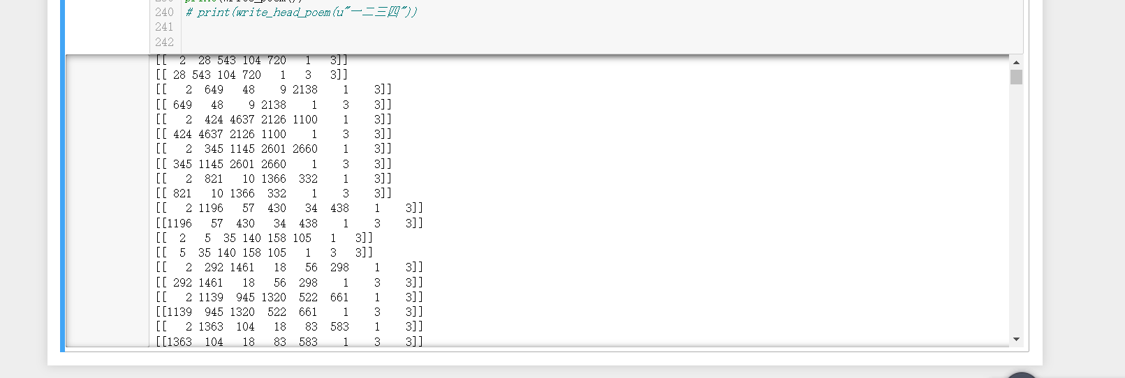 在训练的过程中发现总是会出现过拟合的现象,在处理的数据的时候,准备的数据还是不够多,在这个过程中,巩固了之前学习的知识,也对机器学习有了更深层次的理解。最终的训练模型达到了预期的效果。通过selenium自动化框架对古诗词网站进行爬取,将爬取下来的古诗词用jieba 分词进行分词,将数据分为训练集和测试集,经过这次的训练我深刻的意识到自己还有很多方面的不足,今后会不断地改善、加强自己对部分代码的理解。