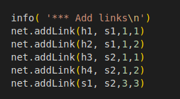 使用Mininet搭建的SDN拓扑,如下图所示,要求支持OpenFlow 1.3协议,主机名、交换机名以及端口对应正确。