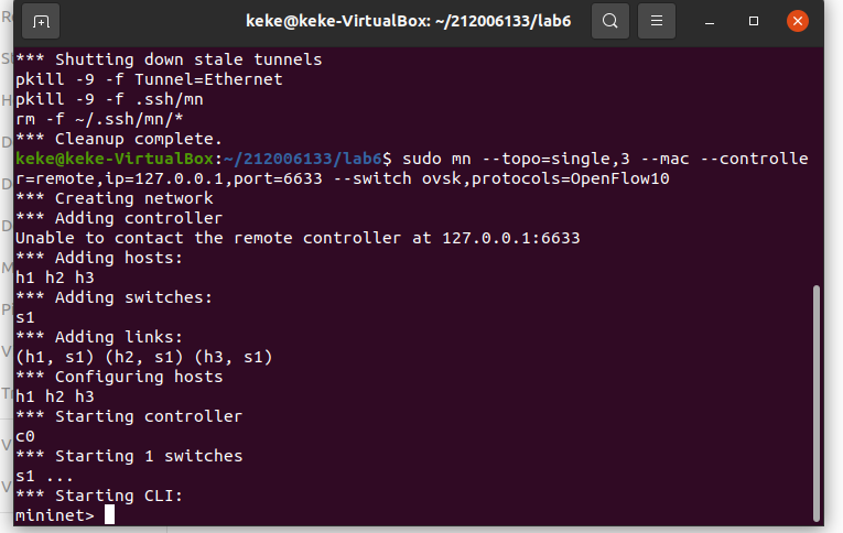 sudo mn --topo=single,3 --mac --controller=remote,ip=127.0.0.1,port=6633 --switch ovsk,protocols=OpenFlow10