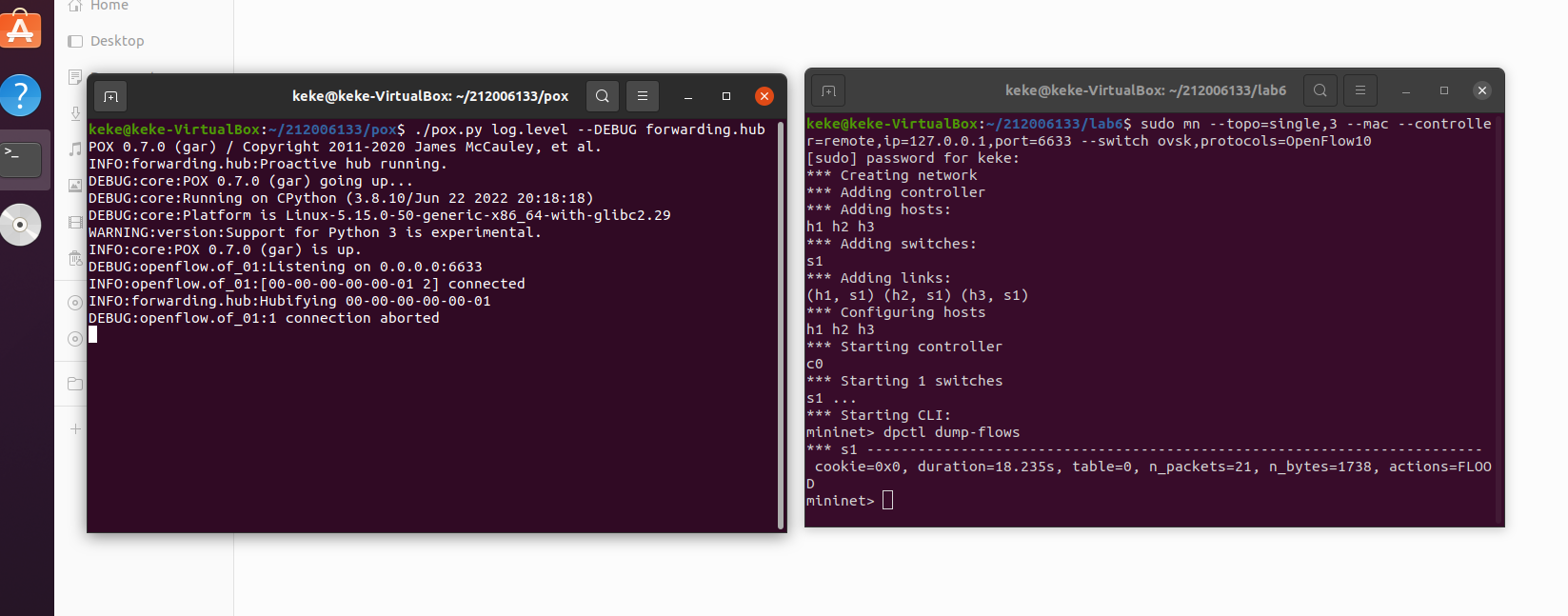 、编程修改L2Switch.py,另存为L2xxxxxxxxx.py,使之和POX的Hub模块的变得一致?(xxxxxxxxx为学号)