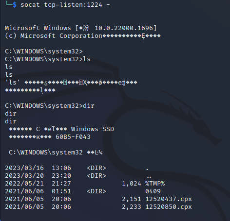 先在kali中输入socat top-listen:1224 -
