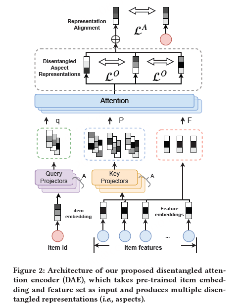 在快手短视频中,存在item embedding 和 item feature 这两个特征是不统一的,本文通过DAE框架学习,通过MLP的映射,将两者映射后 embedding拉近,如loss MSE和InfoNCE,同时不同view的embedding 尽可能不同化 则又LO ,类似GNN中 根据feature 去学习自身表示。有了自身表示则 有相似性,有了多样性则有多样性。