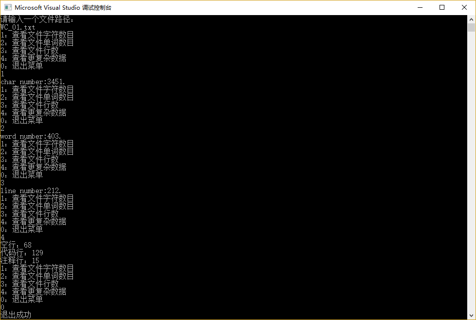 拿到题目后先是考虑到如何读取文件的问题以及用何种条件去判断各类型数目,翻阅有关C语言的书本资料后,解决了问题,大致将主函数写了出来,以及需要哪些功能函数也写了大致的定义。基本功能的函数写的比较顺利,扩展功能用了比较长的时间去思考用何种方式实现更快捷,最后一点点的完善了功能和体验。