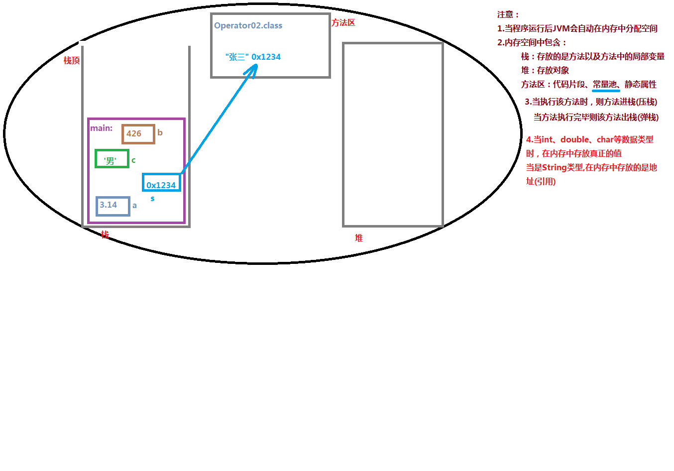 引用数据类型变量,在内存中存放的是地址(引用),如:String.....