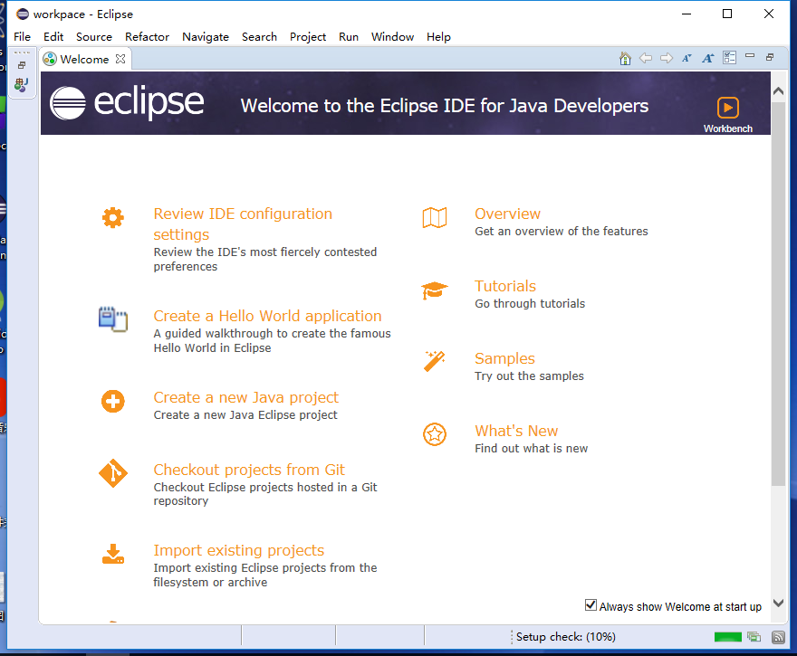 由于在这之前电脑里已经安装了ecplise,所以在这直接展现开始图片。