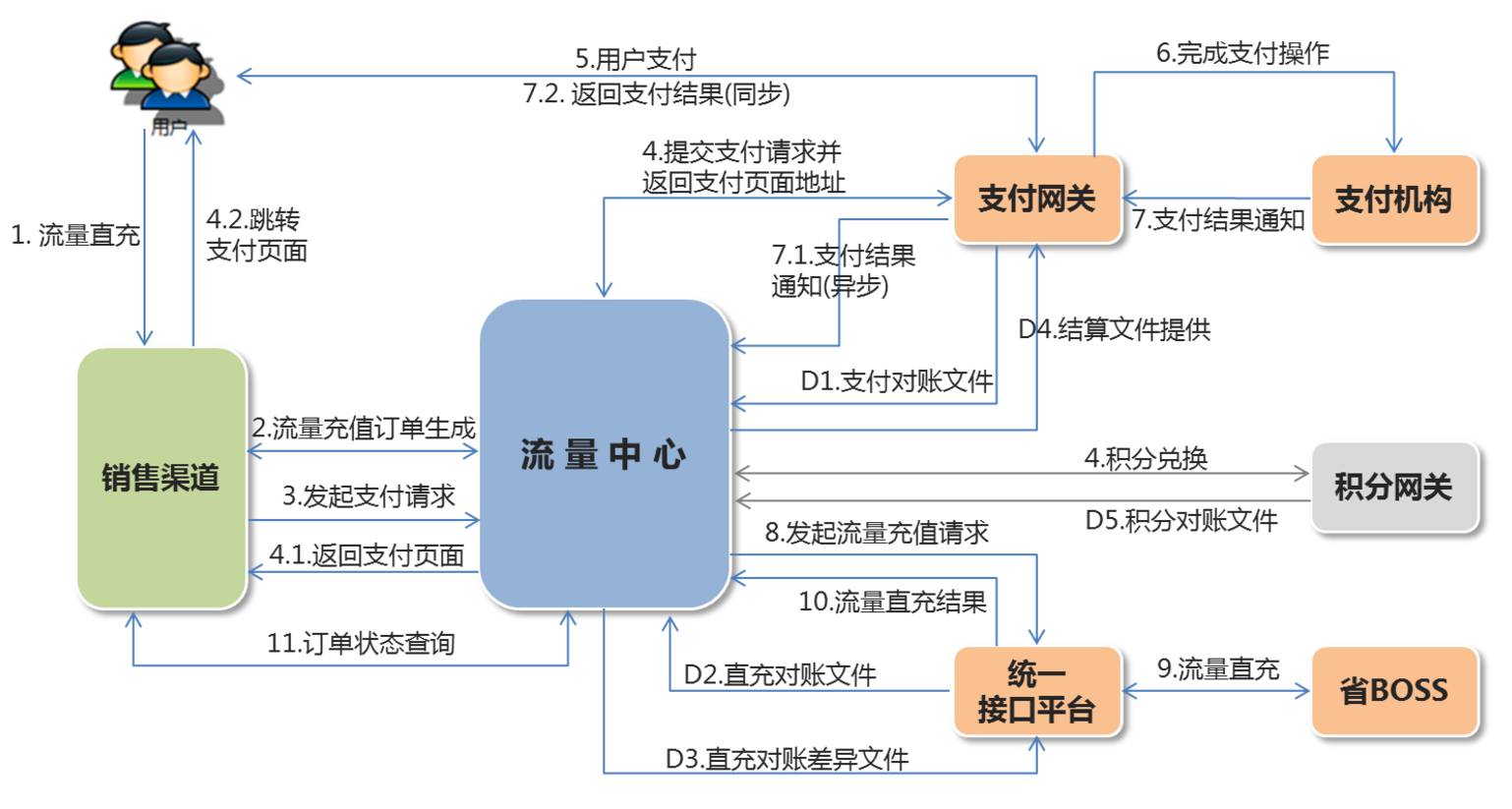 再说我们做的一个项目:中国移动-流量充值能力中心,核心业务流程为: