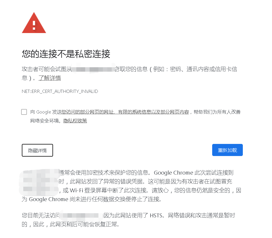 提示:您目前无法访问 xxx.com,因为此网站使用了 HSTS。网络错误和攻击通常是暂时的,因此,此网页稍后可能会恢复正常。