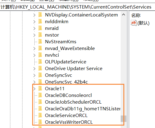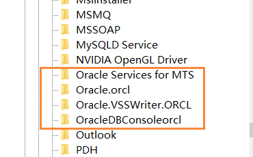 12、找到HKEY_LOCAL_MACHINE\SYSTEM\CurrentControlSet\Services 目录下,所以带ORACLE都删除