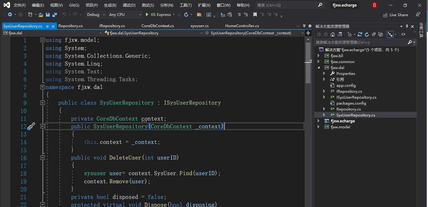 .net core 连接mysql 五:创建SysUserRepository实现接口ISysUserRepository