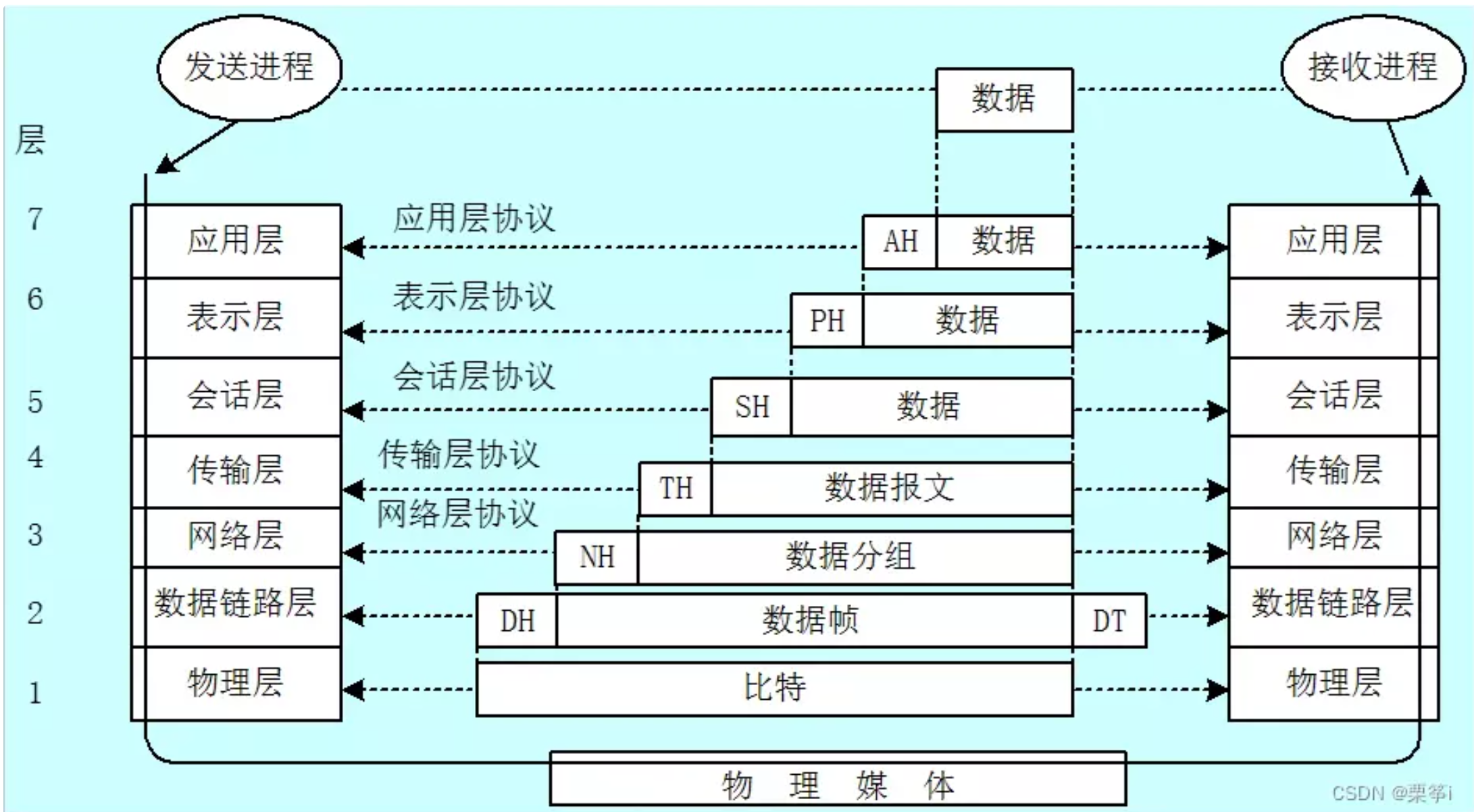 - 物理层:通过网线、光缆等这种物理方式将电脑连接起来。传递的数据是比特流