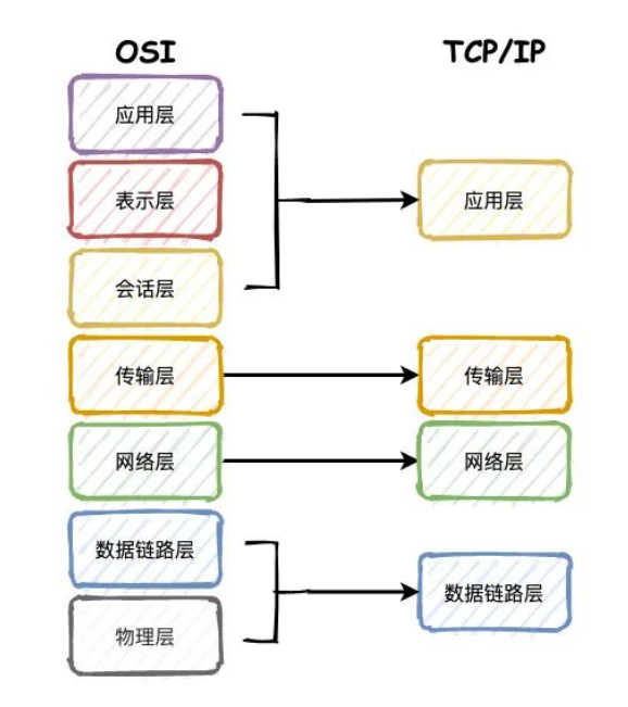 TCP/IP 则是四层的结构,相当于是对 OSI 模型的简化