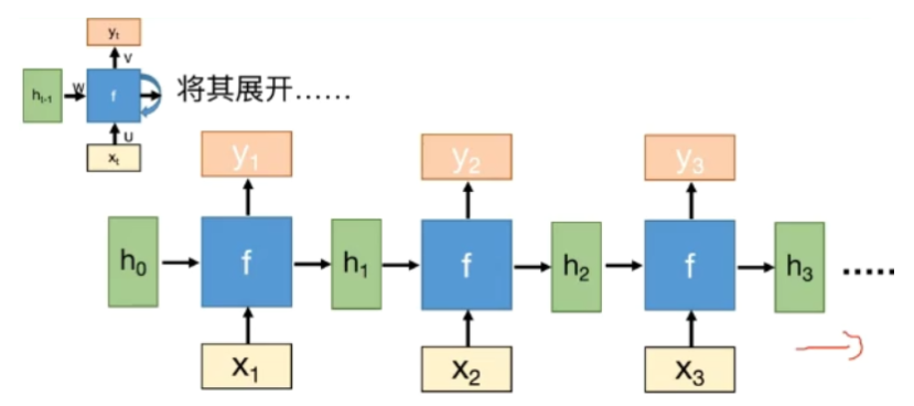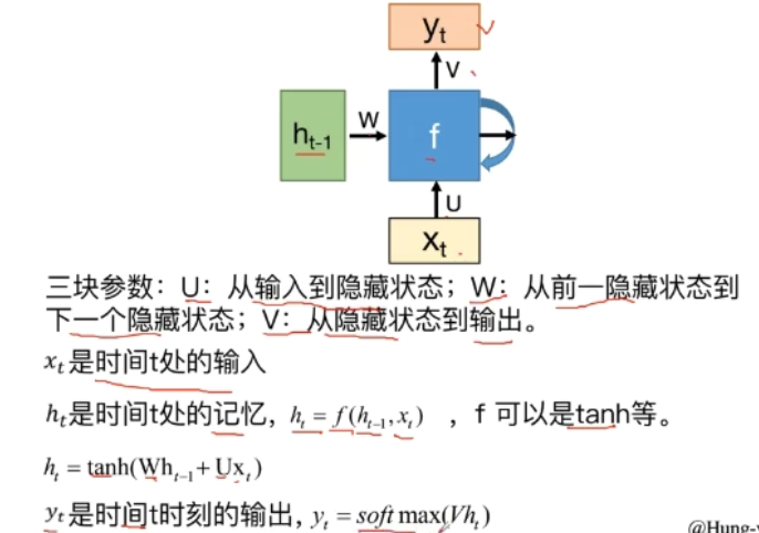 - 输出y不仅由当前的输入所决定,还会考虑到之前的“记忆”