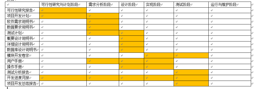 明书、数据库设计说明书、用户手册、操作手册、模块开发卷宗、测试计划、测试分析报告、