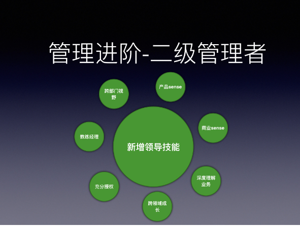 同时,作为二级管理者,还需要培养一级管理者和架构师,教练他们是很关键的管理动作。