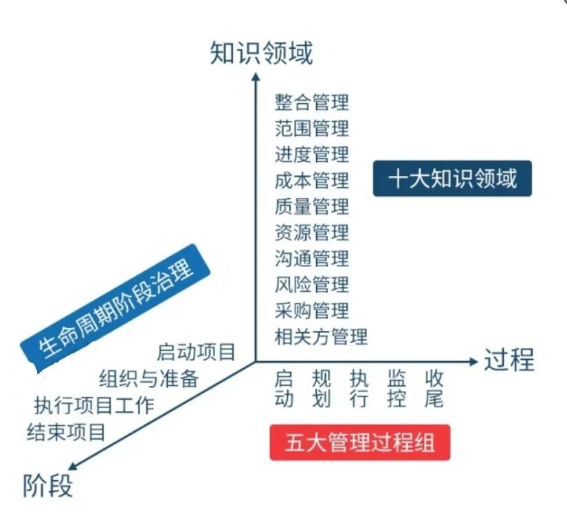 以十大知识域进行开头,再以五大过程进行梳理。我们作为乙方的项目经理,项目管理就是整合①十大知识域的过程,整合各个维度的子计划的过程。首先确定范围②,什么该你做,什么不该你做,怎么定义范围划定基线,偏离了基线我们进行整体变更。那么三大基线就是:进度③不能超期、成本④不能超额要省钱、质量⑤不能缩水。定义了基线就需要资源⑥去执行这一系列的工作,资源从哪里来的,进行采购⑦分析判断是自制和外购。与此同时每个项目都有干系人⑧,需要去识别干系人的重要性,有人的地方就有江湖从而需要进行沟通⑨管理,让正确的信息在正确的时间通过正确的方式传递给正确的人,达到正确的效果。风险⑩是一种不确定的事件和条件,随着项目的推进,渐进明细,风险系数逐渐也会降低。