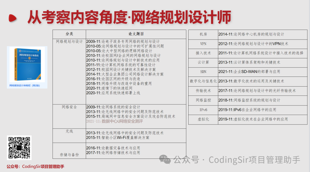 系统规划:主要内容包括信息系统综合知识、信息技术知识、信息技术服务知识、IT服务规划设计、IT服务部署实施、IT 服务运营管理、IT服务持续改进、监督管理、IT 服务营销、团队建设与管理、标准化知识与 IT服务相关标准、职业素养与法律法规以及专业英语。